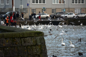 Pictured above in addition to the mallards are white whooper swans, brown greylag geese (I had to look these up because I’d never seen them before), Iceland’s version of seagulls, and, as far as I could tell, a single pigeon—which seemed like an impossible amount of pigeons. When has there only ever been one pigeon?